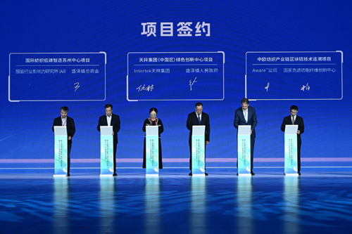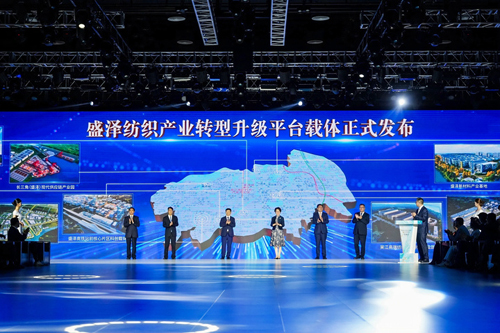 开幕式上,核心战略与关键成果集中释放,为盛泽纺织高质量发展锚定方向。吴江纺织产业转型升级战略正式发布,擘画吴江纺织产业高端化、数字化、绿色化、国际化、品牌化的转型升级战略路径;发布了盛泽高铁站前核心片区科创载体、吴江纺织循环经济产业园、中集(吴江)新材料及智能制造产业园、盛泽新材料产业基地、吴江高端纺织装备制造产业园、盛泽合成生物创新园、长三角(盛泽)现代供应链产业园、跨境电商产业园、盛泽东方纺织城、以及盛泽国际纺织城等盛泽纺织产业转型升级平台载体,助力盛泽构建以高端纺织为支柱,新材料、智能装备、现代服务业为重点方向的“1+3+N”现代化产业体系。