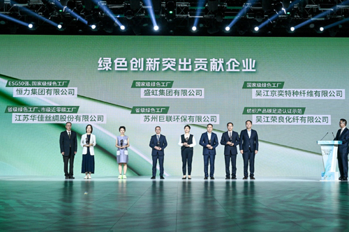 绿色低碳成为产业转型核心关键词。活动发布了“智绿同行 碳索未来”盛泽纺织产业绿色低碳转型发展成果,包括联合中纺联发布纺织工业层面全球首个区域产业“双碳”行动方案,以一流标准打造纺织循环经济(近)零碳产业园,吴江高新区成功入选省级绿色工业园区。现场还为恒力集团、盛虹集团等7家绿色创新突出贡献企业颁奖,以榜样力量推动行业节能降碳。