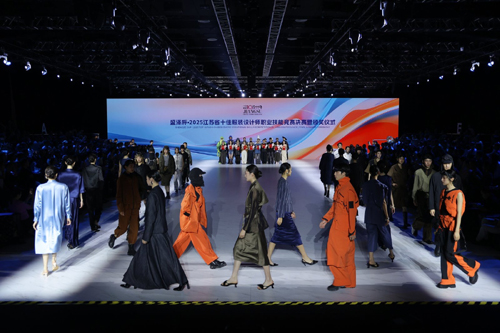 10月18日晚,盛泽杯·2025江苏省十佳服装设计师职业技能竞赛决赛暨颁奖仪式在苏州市吴江区盛泽镇举行。现场,21位设计师携盛泽原产原创面料作品闪耀秀场, 高性能功能性面料、可追溯环保面料、盛泽特色丝绸提花面料……, 让盛泽本土面料绽放秀场风采。